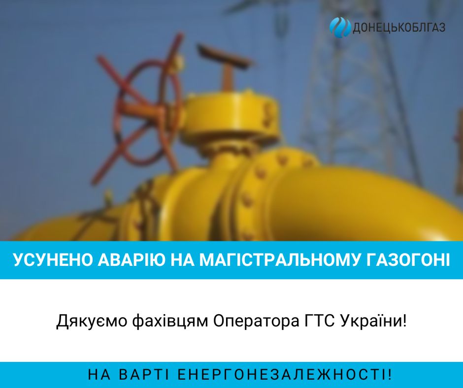 Шановні мешканці Донеччини, відновлено газопостачання в області!